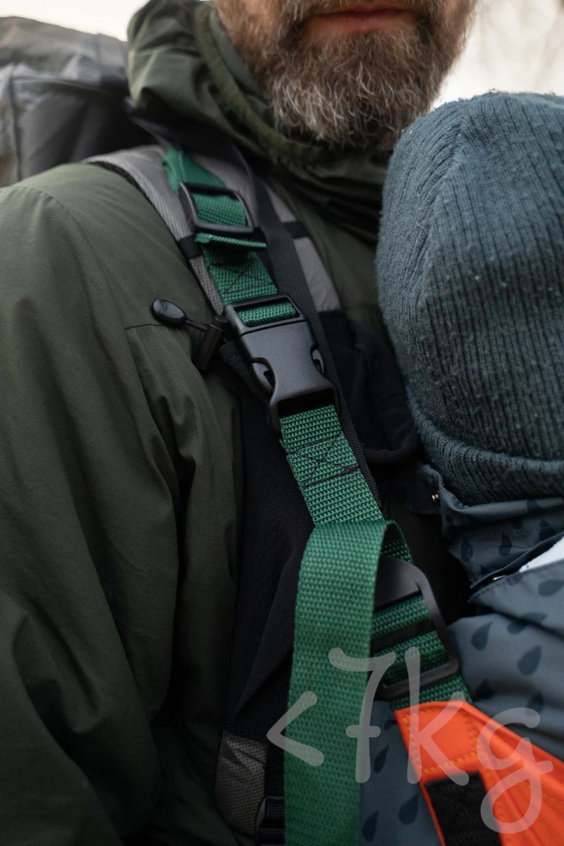 Batoh, se kterým nosítko používáte musí mít tzv. balanční popruhy (popruh, který jde z vrcholu ramenního popruhu k zádům batohu a přitahuje batoh blíže k zádům). Tyto popruhy musí být dostatečně pevně přišité, aby unesly zátěž dítěte. U ultralehkých batohů je potřeba si na to dát opravdu pozor, protože popruhy těchto batohů na takovou zátěž nejsou připravené.